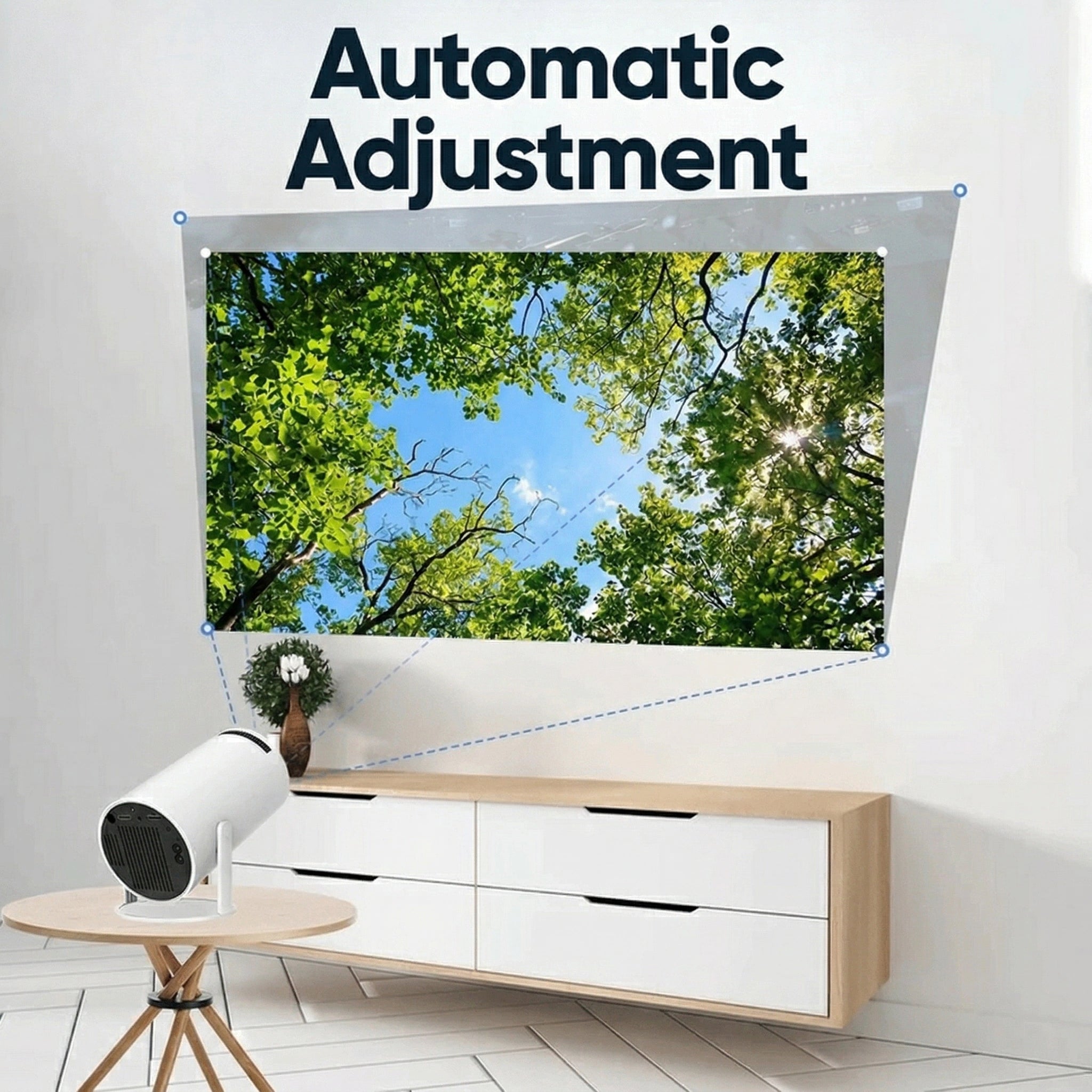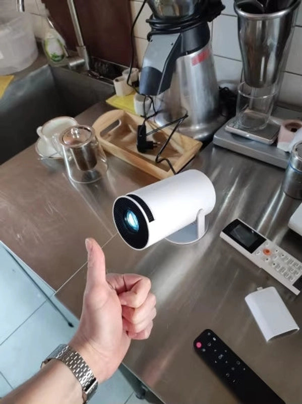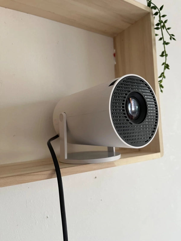 Its sleek cylindrical form and minimalist aesthetic blend seamlessly into any decor, making it more than just a projector – it's a statement piece. Enjoy effortless setup and stunning projections anywhere in your home.